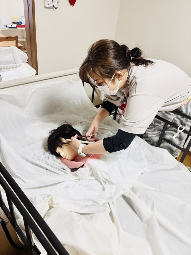 本日は、中川さんにベッドカットの研修をしていただきました😊